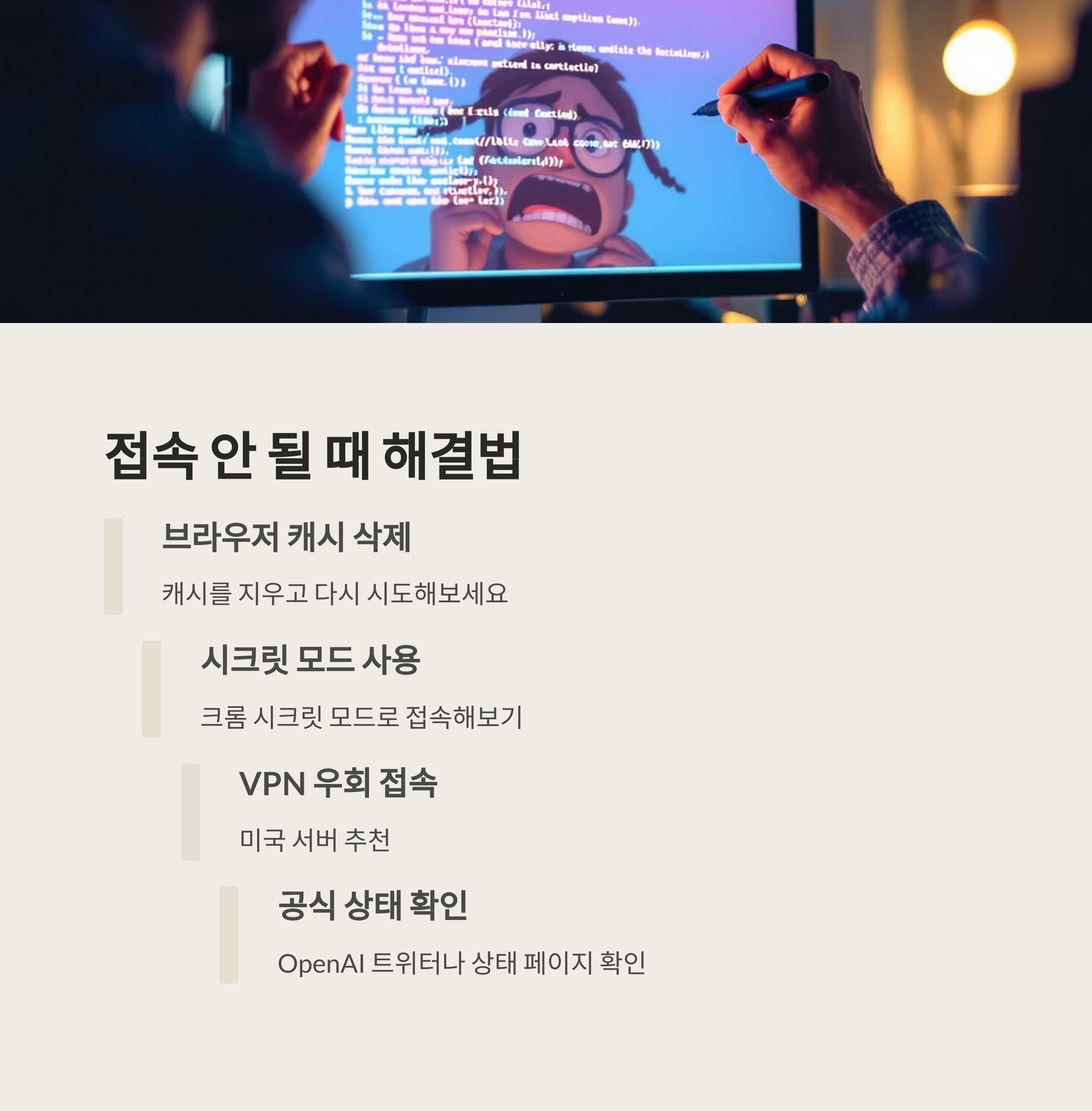 가끔 접속이 안 되거나, "Region not supported" 같은 에러가 뜰 때가 있어요. 너무 당황하지 마세요! 아래 방법을 순서대로 따라 하면 대부분 해결됩니다.